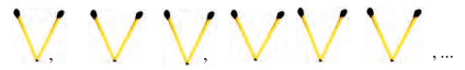 1. আমি দেশলাই কাঠি দিয়ে নীচের মতো V , Z , E , D তরি করার চেষ্টা করি ও যেকোনো নকশায় প্রয়োজনীয় কাঠির সংখ্যা জানার সহজ নিয়ম গড়ার চেষ্টা করি ।