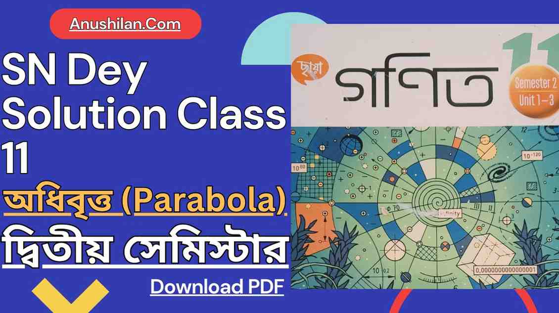 [অধিবৃত্ত] SN Dey Solutions of Class 11 Parabola || সৌরেন্দ্রনাথ দে সমাধান ক্লাস 11 অধিবৃত্ত সেমিস্টার-2 এর জন্য – Anushilan.Com এর তরফ থেকে ক্লাস XI এর ছাত্রছাত্রীদের জন্য নিয়ে আসা হয়েছে ছায়া প্রকাশনীর সৌরেন্দ্রনাথ দে বইয়ের অধিবৃত্ত অধ্যায়েরপ্রত্যেকটি অঙ্কের সমাধান । ইতিমধ্যেই প্রত্যেকে অবগত হয়েছেন যে 2025 সাল থেকে একাদশ ও দ্বাদশ শ্রেণির পাঠক্রম পরিবর্তন করা হয়েছে তার সাথে পরিবর্তিত হয়েছে বিভিন্ন বইগুলিও । এখানে 2025 সালের Semester -2 এর ছায়া প্রকাশনীর (Chaya) নতুন বইয়ের অধিবৃত্ত অধ্যায়ের সম্পূর্ণ সমাধান PDF আকারে দেওয়া হল । PDF টি দেখার পরে ডাউনলোড করে নেওয়া যাবে । সম্পূর্ণ কনিক সেকশন থেকে সেমিস্টার 2 এর পরীক্ষায় থাকবে ১০ নম্বরের প্রশ্ন। অভিজ্ঞ শিক্ষকরা অনেক পরিশ্রম করে এই সমাধান তৈরি করেছেন, তবুও এই সমাধানের মধ্যে কোনো ভুল যদি থেকে থাকে ত্রুটি মার্জনা করবেন এবং কমেন্টের মাধ্যমে আমাদের জানাবেন ।